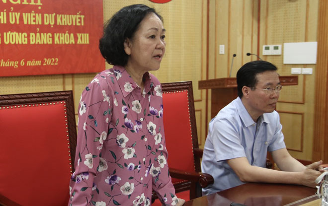 Đồng chí Trương Thị Mai mong muốn những cán bộ dự khuyết hôm nay, trong tương lai sẽ vững vàng trở thành những uỷ viên chính thức và giữ vị trí quan trọng trong Đảng, xứng đáng với niềm tin, sự tin tưởng của Bộ Chính trị, Ban Bí thư và Trung ương giao phó. “Làm sao để đi hết trọn vẹn cuộc đời với Đảng, không thể đi giữa chừng rồi "bật" ra ngoài. Điều đó là phụ công rèn luyện, chăm lo của Đảng. Nhân dân sẽ vui khi Đảng có những người cán bộ tốt. Làm sao để Nhân dân sẽ tin tưởng, ủng hộ đội ngũ cán bộ trẻ mà Đảng sắp xếp, đào tạo, bồi dưỡng”, đồng chí Trương Thị Mai nhắc nhở lớp cán bộ trẻ kế cận của Đảng.