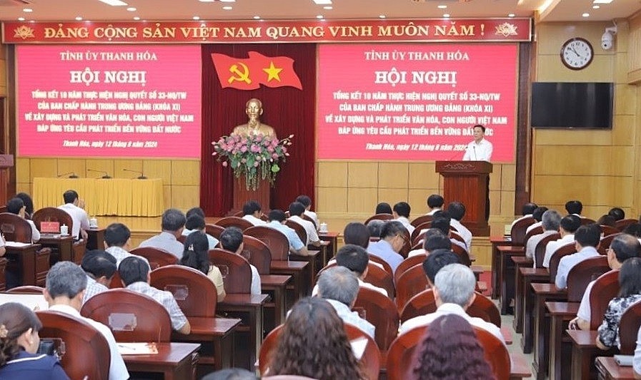 Ngày 12/8, tỉnh Thanh Hóa đã tổ chức Hội nghị tổng kết 10 năm thực hiện Nghị quyết số 33-NQ/TW ngày 9/6/2014 của Ban Chấp hành Trung ương Đảng (khóa XI) về xây dựng và phát triển văn hóa, con người Việt Nam đáp ứng yêu cầu phát triển bền vững đất nước.