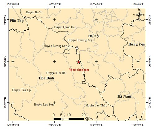 Động đất xảy ra tại khu vực huyện Lương Sơn, tỉnh Hòa Bình. Cấp độ rủi ro thiên tai cấp 0.