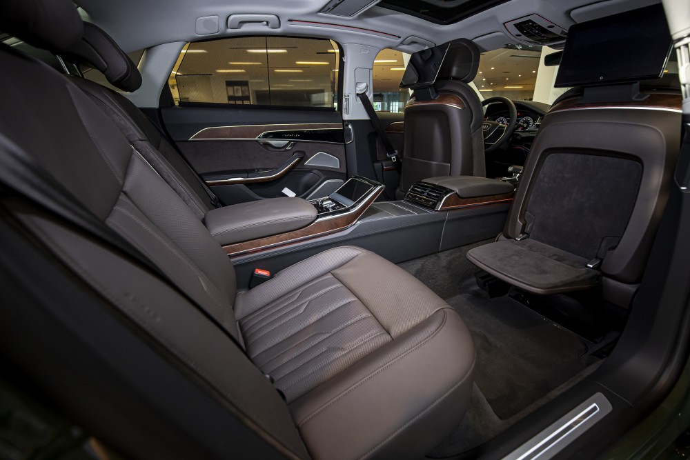 Audi A8L phiên bản Premium thêm phần đẳng cấp với những khách hàng đặc biệt khi phần ốp trung tâm nối dài biến chiếc limousine thành phiên bản 4 chỗ. Audi A8L được bảo hành 3 năm không giới hạn km.