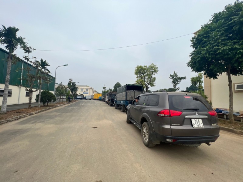 | Xe nối đuôi nhau ở Trung tâm đăng kiểm duy nhất Hoà Bình dịp cuối năm |