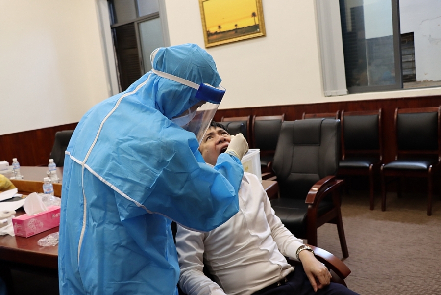 Tổng cục Quản lý thị trường cũng nhanh chóng phối hợp với Trung tâm y tế quận Hoàn Kiếm lấy mẫu xét nghiệm sàng lọc Covid-19 cho toàn bộ công chức, người lao động làm việc tại trụ sở Tổng cục.