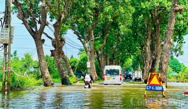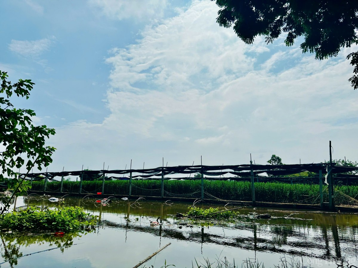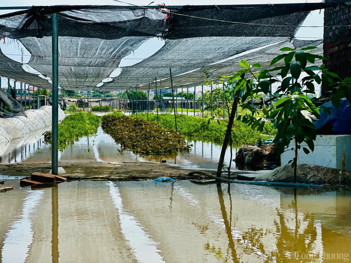 Lối vào làng hoa Tây Tựu ngập trong nước, ghi nhận của phóng viên Báo Công Thương ngày 13/9. |
