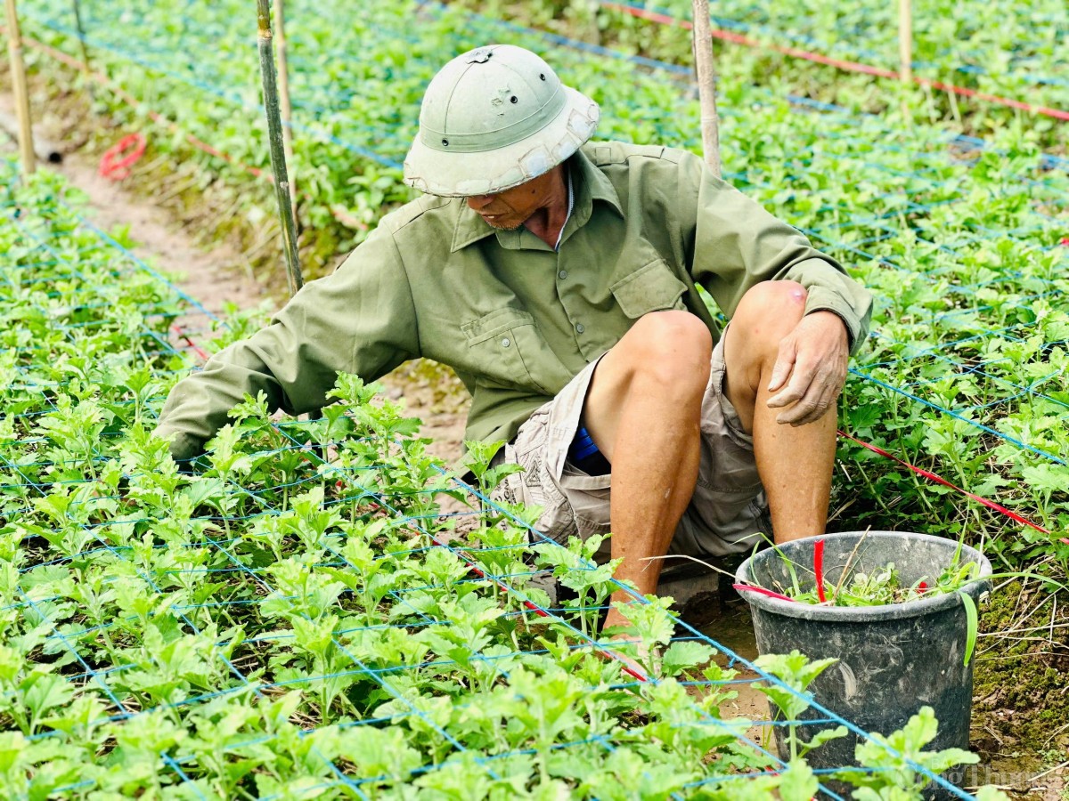 Chú Nguyễn Ngọc Phượng, thôn 3, làng Tây Tựu, quận Bắc Từ Liêm, Hà Nội chia sẻ, nhà chú có 3 sào trồng cúc, hơn 2 sào đã bị mưa ngập hỏng hết rồi, còn mỗi chỗ này đất cao, không bị ngập, khả năng sau 20/11 sẽ thu hoạch được, chỉ mong sắp tới không có mưa bão,…. |