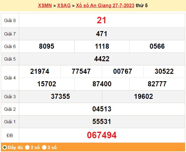 | XSAG 27/7, Kết quả Xổ số An Giang ngày 27/7 |