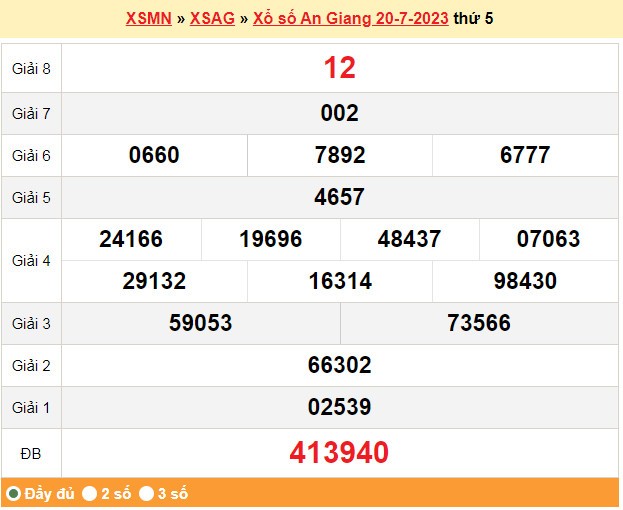 | XSAG 20/7, Kết quả Xổ số An Giang ngày 20/7 |