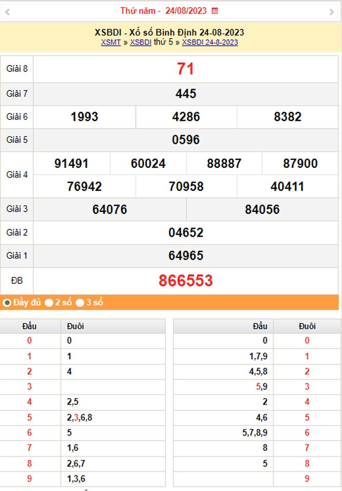 XSBDI 24/8, trực tiếp kết quả xổ số Bình Định thứ Năm ngày 24/8/2023