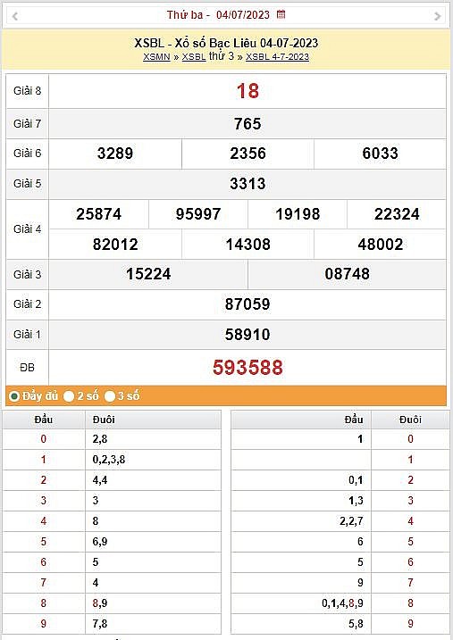 XSBL 4/7 - Kết quả xổ số Bạc Liêu hôm nay ngày 4/7/2023 – KQXSBL thứ Ba ngày 4 tháng 7XSMN 10/7 – Trực tiếp kết quả xổ số miền Nam hôm nay 10/7/2023, xổ số miền Nam ngày 10 tháng 7XSMB 10/7 - Trực tiếp kết quả xổ số miền Bắc hôm nay ngày 10/7/2023 – xổ số miền Bắc 10/7