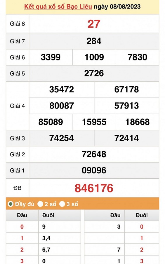 | XSBL 8/8, Kết quả Xổ số Bạc Liêu ngày 8/8 |