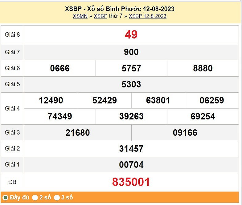 Cập nhật Kết quả Xổ số Bình Phước hôm nay 19/8/2023, xổ số Bình Phước ngày 19 tháng 8, XSBP thứ Bảy 19/8/2023 - XSBP 19/8, xổ số Bình Phước thứ Bảy được quay trả thưởng tại Bình Phước vào lúc 16 giờ 15 phút.