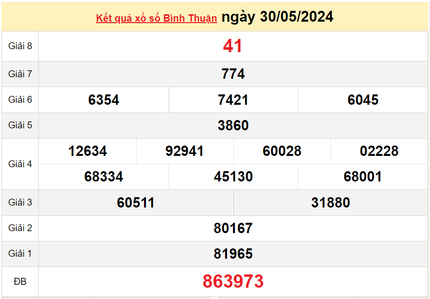 Cập nhật Kết quả Xổ số Bình Thuận hôm nay 6/6/2024, xổ số Bình Thuận ngày 6 tháng 6, XSBTH thứ Năm 6/6/2024 - XSBTH 6/6, xổ số Bình Thuận thứ Năm được quay trả thưởng tại Bình Thuận vào lúc 16 giờ 15 phút.