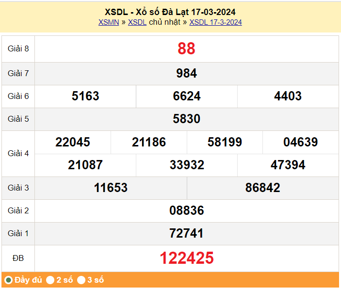 | XSDL 17/3, Xổ số Đà Lạt ngày 17 tháng 3 |