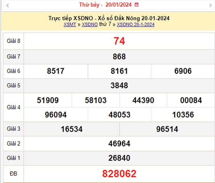 | XSDNO 20/1, trực tiếp kết quả xổ số Đắk Nông thứ Bảy ngày 20/1/2024 |