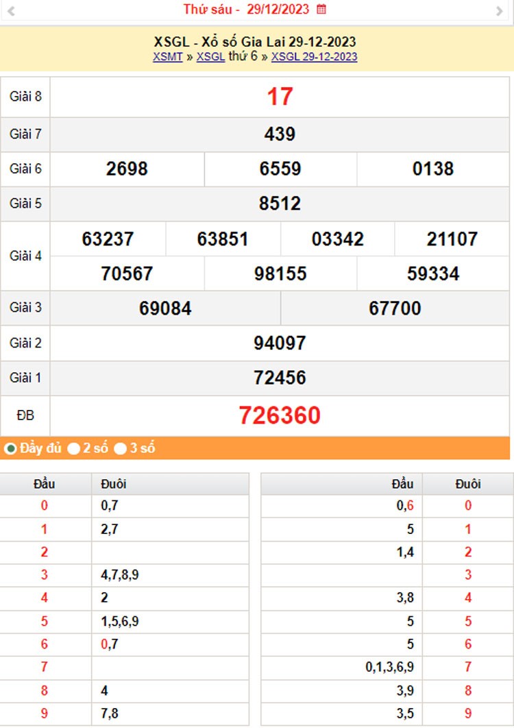Cập nhật Kết quả Xổ số Gia Lai hôm nay5/1/2024, xổ số Gia Lai ngày 5 tháng 1, XSGL thứ Sáu 5/1/2024 – XSGL 5/1, xổ số Gia Laithứ Sáu được quay trả thưởng tại Gia Lai vào lúc 17 giờ 15 phút.