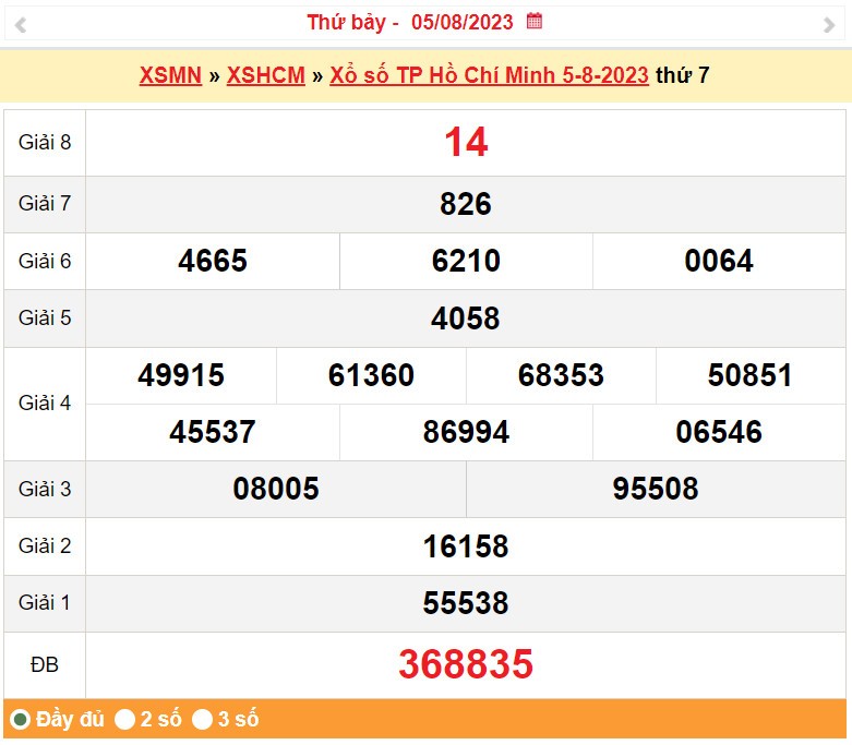 Báo Công Thương cập nhật nhanh chóng, chính xác nhất Kết quả Xổ số TP.HCM hôm nay ngày 7/8/2023; KQSXHCM thứ Hai ngày 7/8/2023 – XSHCM 7/8, xổ số TP.HCM ngày 7 tháng 8 được quay trả thưởng tại TP.HCM vào lúc 16 giờ 15 phút ngày 7/8/2023.