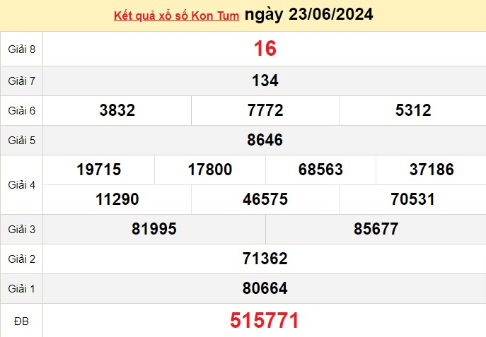 Kết quả Xổ số Kon Tum ngày 23/6/2024, KQXSKT ngày 23 tháng 6, XSKT 23/6, xổ số Kon Tum hôm nay