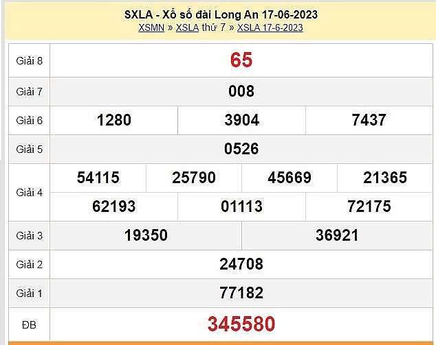 Báo Công Thương cập nhật nhanh chóng, chính xác nhất Kết quả Xổ số Long An hôm nay 1/7/2023; KQSXLA thứ bảy ngày 1/7/2023 - XSLA 1/7, xổ số Long An ngày 1 tháng 7 được quay trả thưởng tại Long An vào lúc 16 giờ 15 phút ngày 1/7/2023