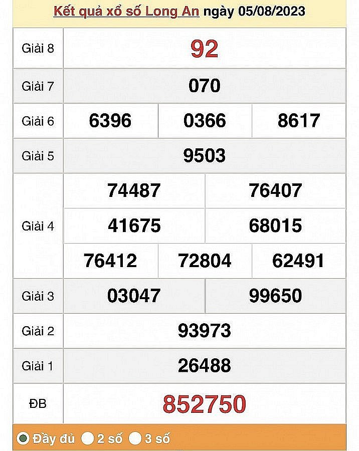 Cùng với kết quả xổ số Long An hôm nay, Báo Công Thương còn cập nhật Xổ số Miền Nam ngày 19/8/2023 được quay thưởng bắt đầu từ giải nhất cho đến giải bảy, cuối cùng là công bố kết quả giải đặc biệt. Thời gian quay mở thưởng từ 16h15 hàng ngày.