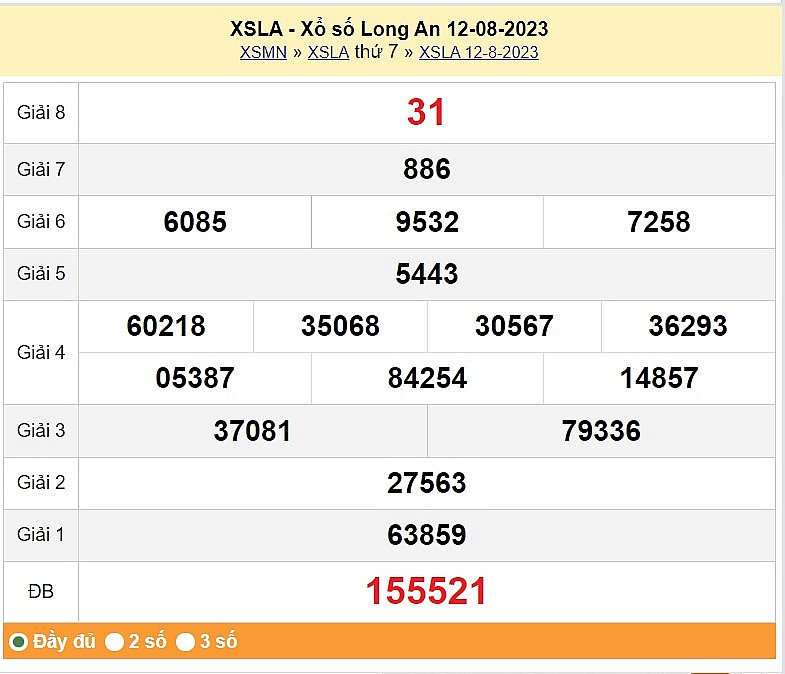 Cập nhật Kết quả Xổ số Long An hôm nay 19/8/2023, xổ số Long An ngày 19 tháng 8, XSLA thứ Bảy 19/8/2023 - XSLA 19/8, xổ số Long An thứ Bảy được quay trả thưởng tại Long An vào lúc 16 giờ 15 phút.
