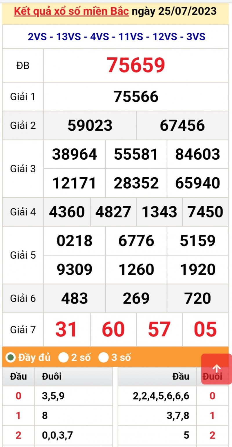 | Kết quả xổ số miền Bắc hôm nay ngày 25/7/2023, Xổ số miền Bắc ngày 25 tháng 7 |