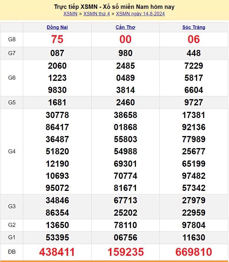 | Kết quả Xổ số miền Nam ngày 14/8/2024, KQXSMN ngày 14 tháng 8, XSMN 14/8, xổ số miền Nam hôm nay |