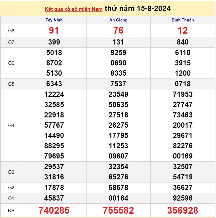 | Kết quả Xổ số miền Nam ngày 15/8/2024, KQXSMN ngày 15 tháng 8, XSMN 15/8, xổ số miền Nam hôm nay |