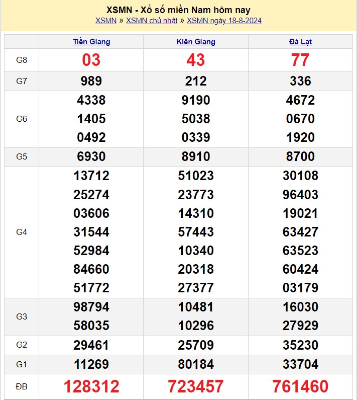 | Kết quả Xổ số miền Nam ngày 18/8/2024, KQXSMN ngày 18 tháng 8, XSMN 18/8, xổ số miền Nam hôm nay |