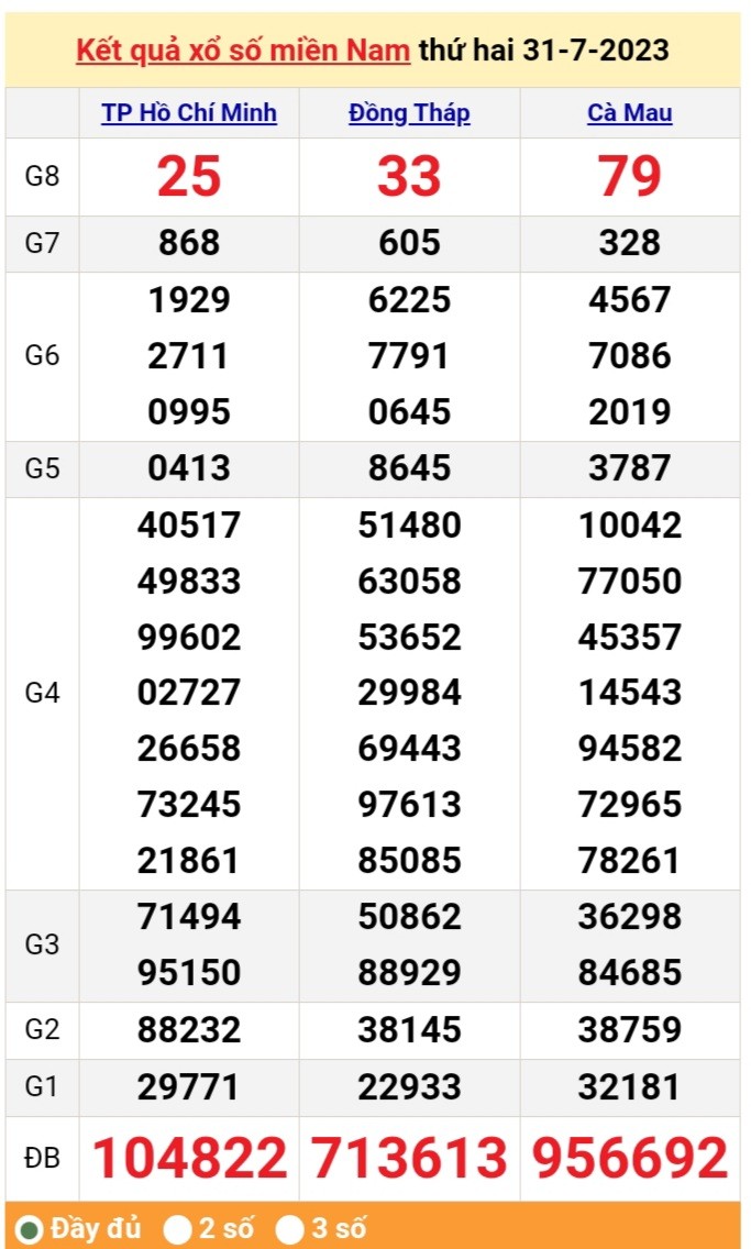 | XSMN 31/7, Xổ số miền Nam ngày 31 tháng 7 |