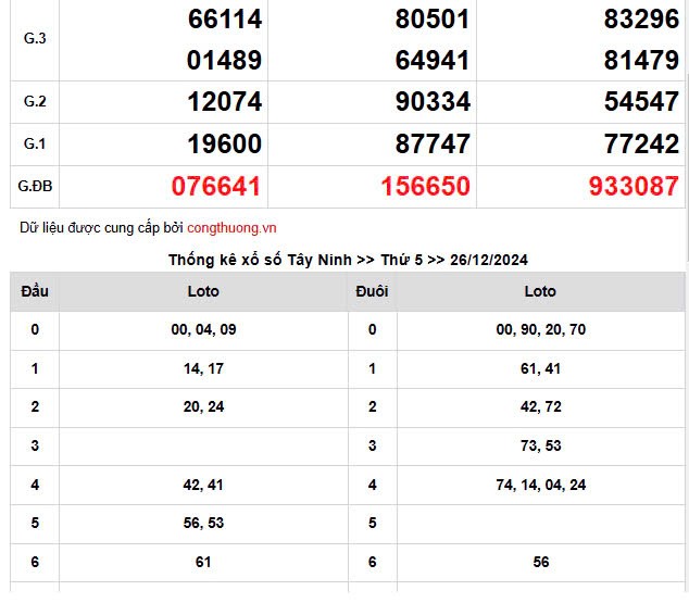 • Thứ 5: xổ số An Giang (XSAG), xổ số Tây Ninh (XSTN), xổ số Bình Thuận (XSBTH)