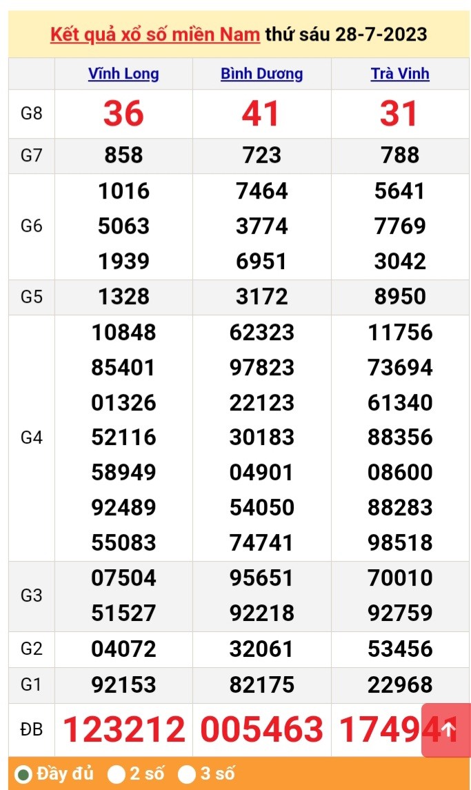 • Thứ 6: xổ số Bình Dương (XSBD), xổ số Vĩnh Long (XSVL), xổ số Trà Vinh (XSTV)