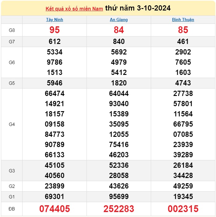| Kết quả Xổ số miền Nam ngày 3/10/2024, KQXSMN ngày 3 tháng 10, XSMN 3/10, xổ số miền Nam hôm nay |