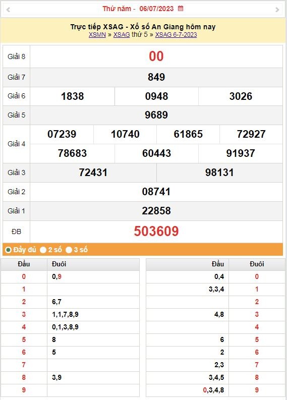XSAG 6/7, trực tiếp kết quả xổ số An Giang thứ năm ngày 6/7/2023. |
