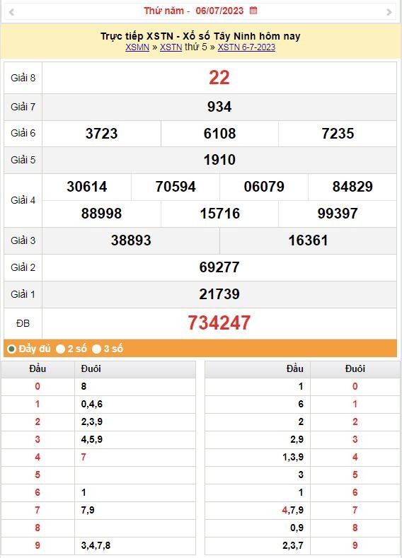 Xổ số miền Nam hôm qua ngày 6/7/2023