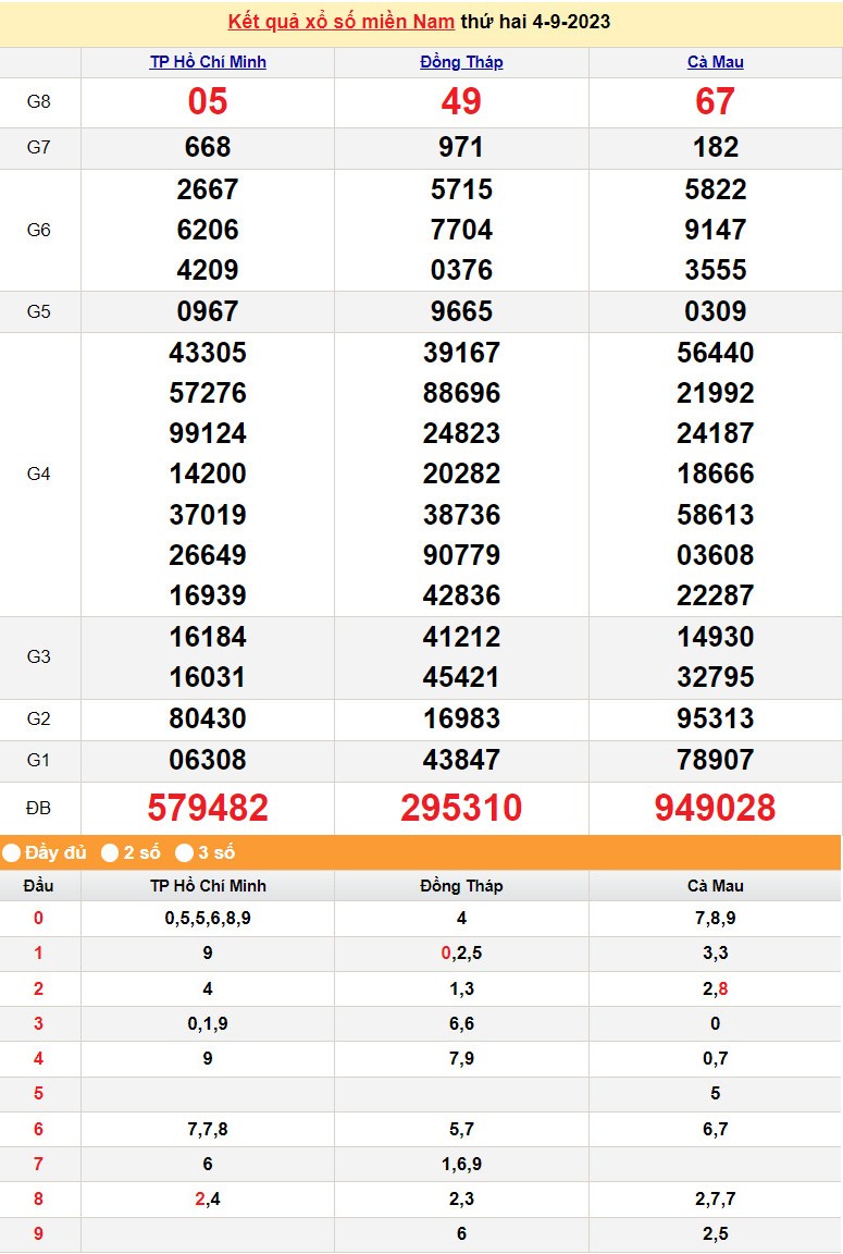 XSMN, Xổ số miền Nam ngày 4 tháng 9