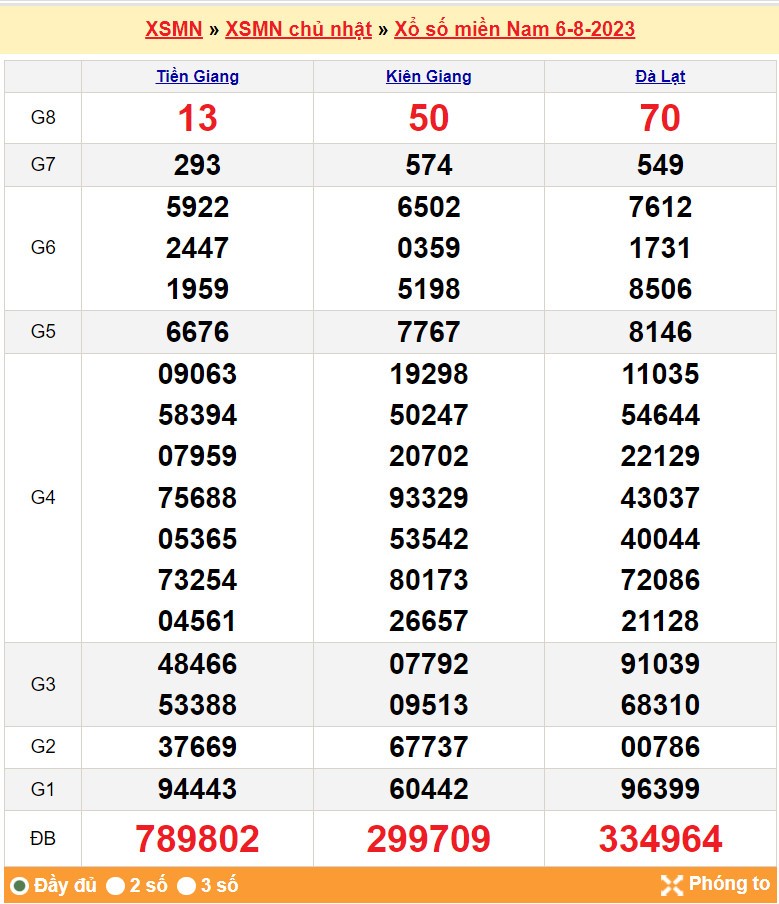 XSMN, XSMN 6/8, Xổ số miền Nam ngày 6 tháng 8