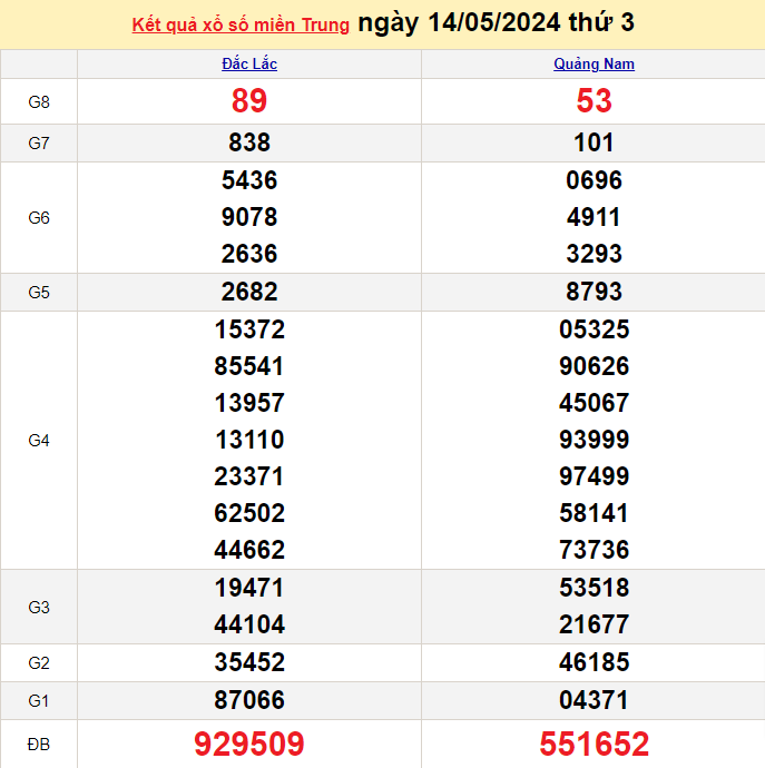 XSMT, Xổ số miền Trung ngày 14 tháng 5