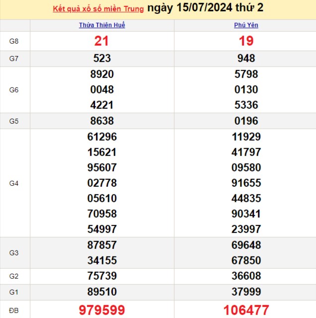 XSMT, Xổ số miền Trung ngày 15 tháng 7