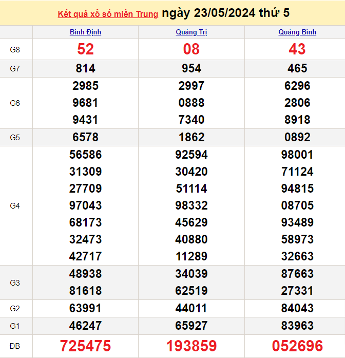 XSMT, Xổ số miền Trung ngày 24 tháng 5