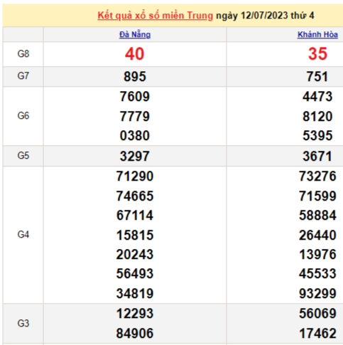 - Thứ 4: Đà Nẵng (XSDNA), Khánh Hòa (XSKH).