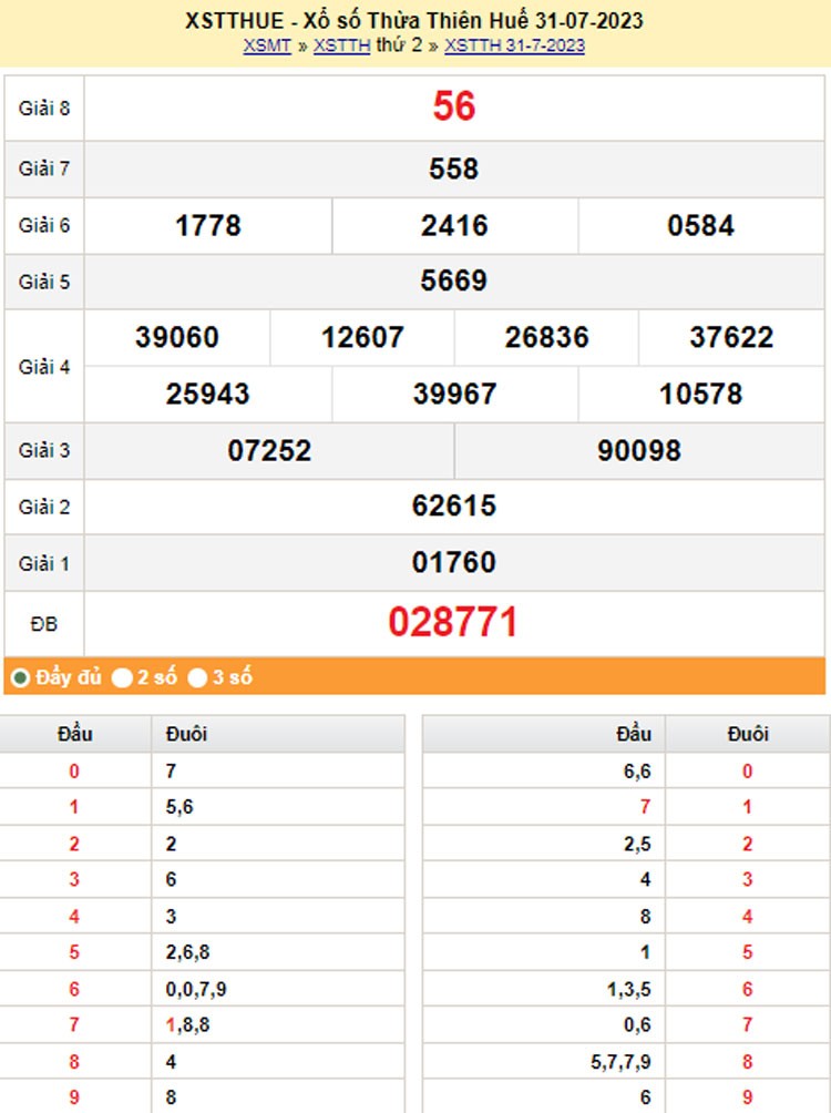 | XSTTH 317, trực tiếp kết quả xổ số Thừa Thiên Huế thứ Hai 31/7/2023 |