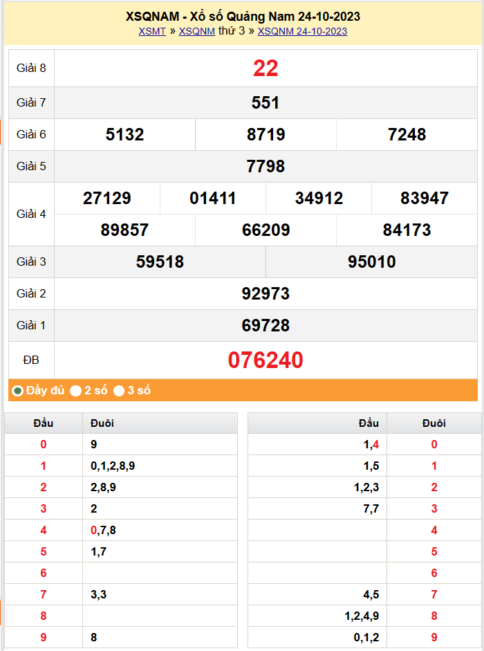 | XSQNA 24/10, trực tiếp kết quả xổ số Quảng Nam thứ Ba ngày 24/10/2023 |