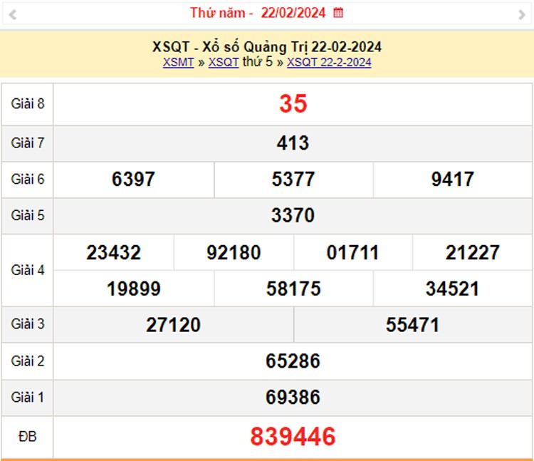 | XSQT 22/2, trực tiếp kết quả xổ số Quảng Trị thứ Năm ngày 22/2/2024 |