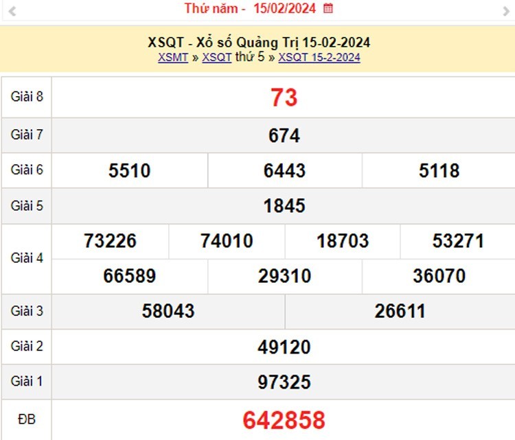 | XSQT 15/2, trực tiếp kết quả xổ số Quảng Trị thứ Năm ngày 15/2/2024 |