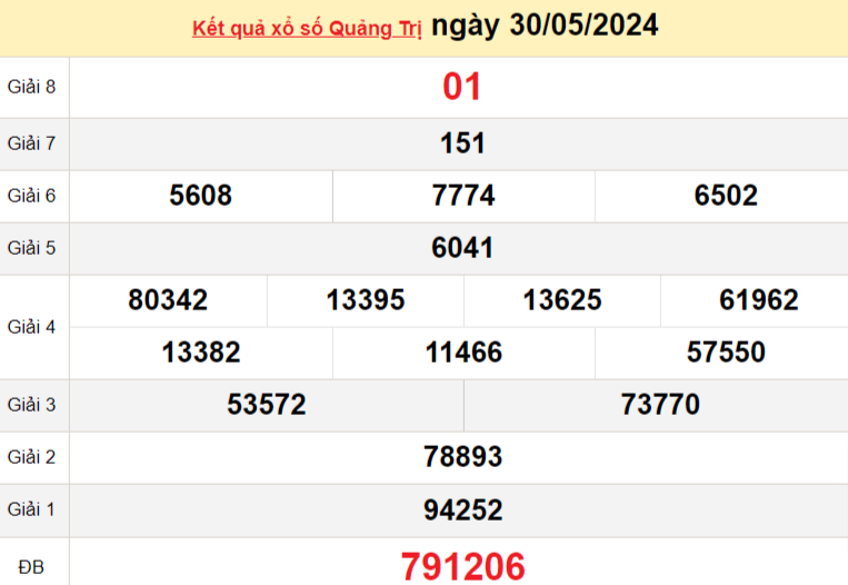 Kết quả Xổ số Quảng Trị 30/5/2024