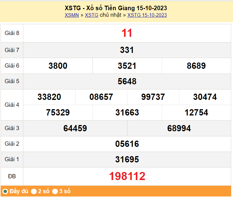 | XSTG 15/10, Xổ số Tiền Giang ngày 15 tháng 10 |