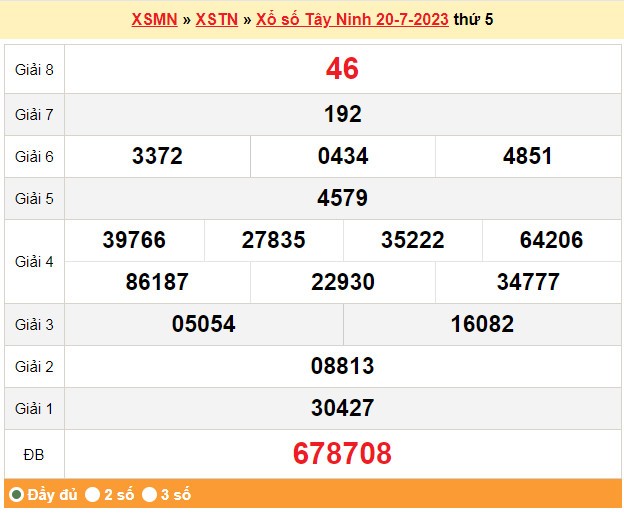 | XSTN 20/7, Kết quả Xổ số Tây Ninh ngày 20/7 |