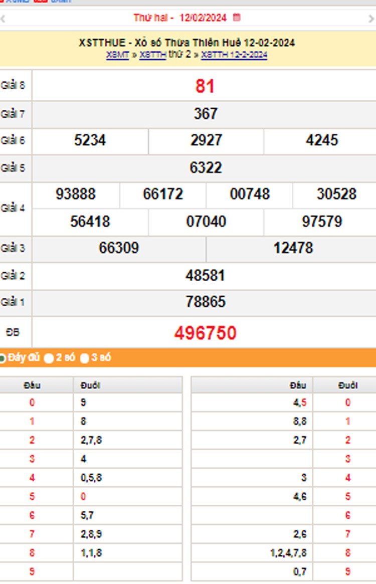 | XSTTH 12/2 trực tiếp kết quả xổ số Thừa Thiên Huế thứ Hai ngày 12/2/2024 |