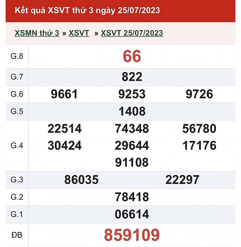 XSVT 25/7, Kết quả Xổ số Vũng Tàu ngày 25 tháng 7