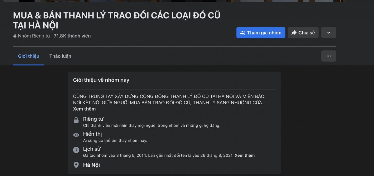 | Hội trao đổi đồ cũ trên nền tảng mạng xã hội Facebook với hơn 70K thành viên. Ảnh chụp màn hình |