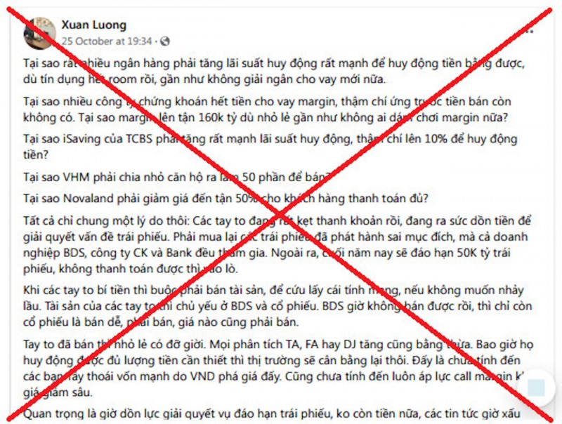 Bộ Công an khuyến cáo, người dân không nên đăng tải, chia sẻ, tán phát tán phát tin giả, tin sai sự thật để tránh gây ảnh hưởng đến thị trường tài chính, chứng khoán.